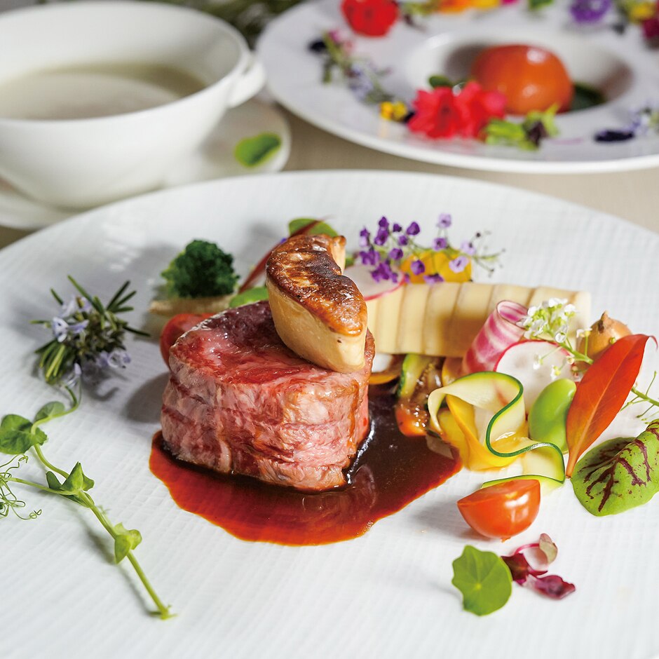和食のニュアンスを取り入れ「日本人の好きなフレンチ」を追求。“料理ではなく想い出を創る”という信念のもと完成する料理は、祝宴にふさわしいものばかり。口コミでも広がる美味しさはゲストへの贈り物にぴったり