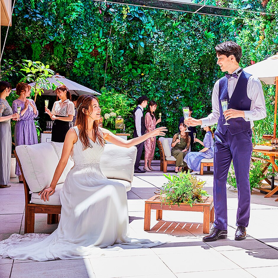 憧れのガーデンパーティを思う存分楽しんでほしいと、季節や天候の心配が少ない全天候型ガーデンも用意。
