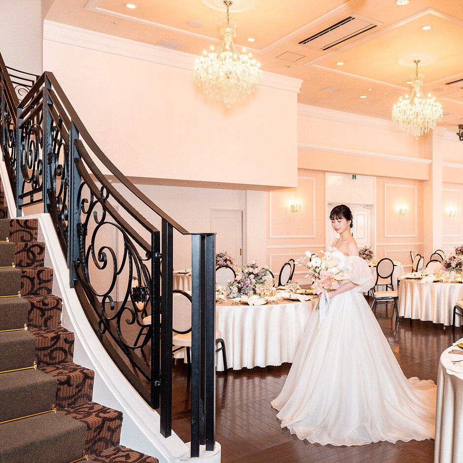 結婚式は1日最大2組で全館貸切。ふたりの想いを丁寧にくみ取る提案力で、同じ場所でも全く違う100組100通りの結婚式に。花嫁姿を美しく演出するドレス&ビューティーサポート、ゲストが快適に過ごせる貸切空間で、憧れを叶えながら『愛され褒められ花嫁』に