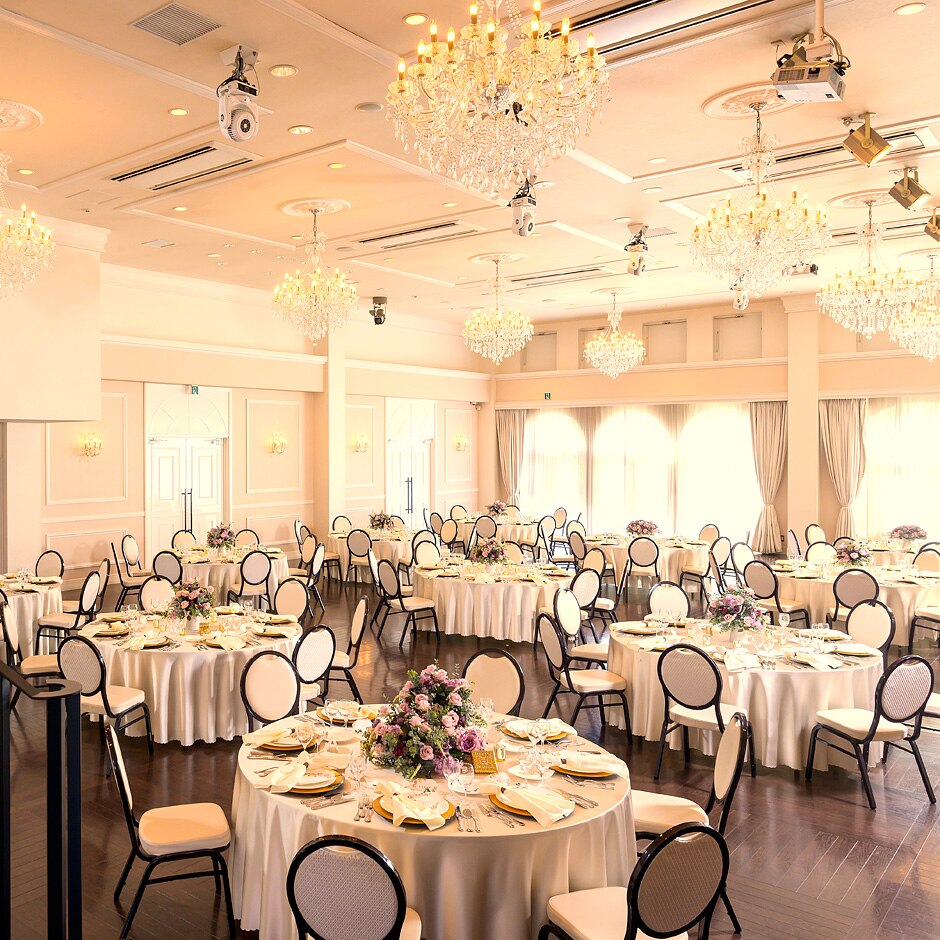 エレガントなおもむきを残しつつも可愛らしくスイートな印象のバンケットルーム -