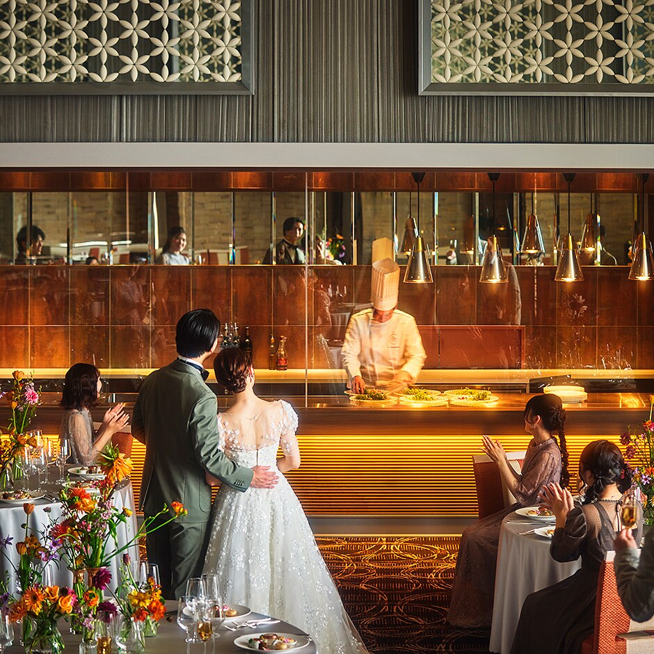 充実した設備の一つがオープンキッチン。目でも楽しめるシェフの調理パフォーマンスも素敵なパーティ演出に
