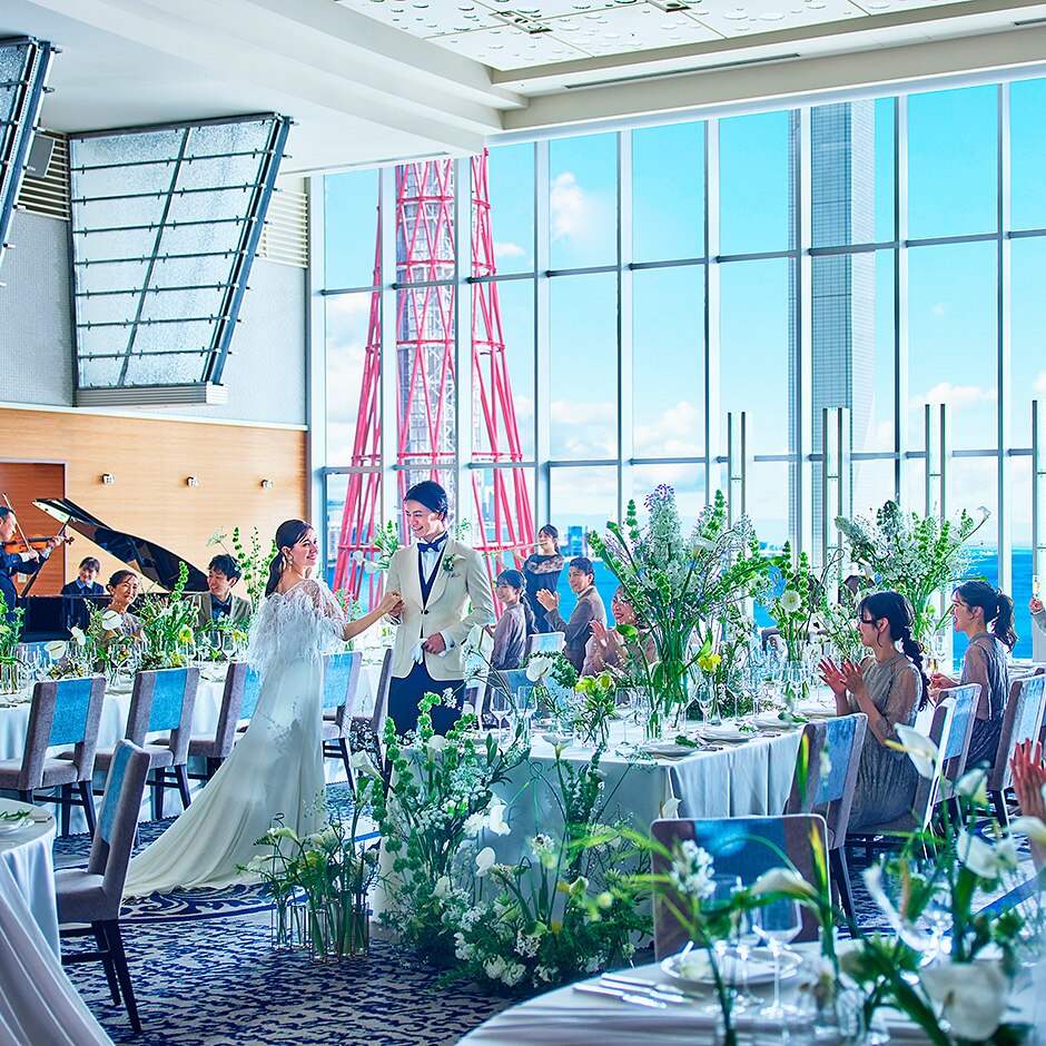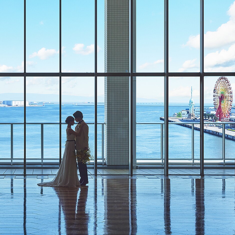 左手にメリケンパーク、右手にハーバーランドを一望できる絶好のロケーション。神戸港になじみがある人でも新鮮に映るほどの絶景を堪能しよう。他にはないこのパノラマが決め手になって結婚式をする花嫁も多い