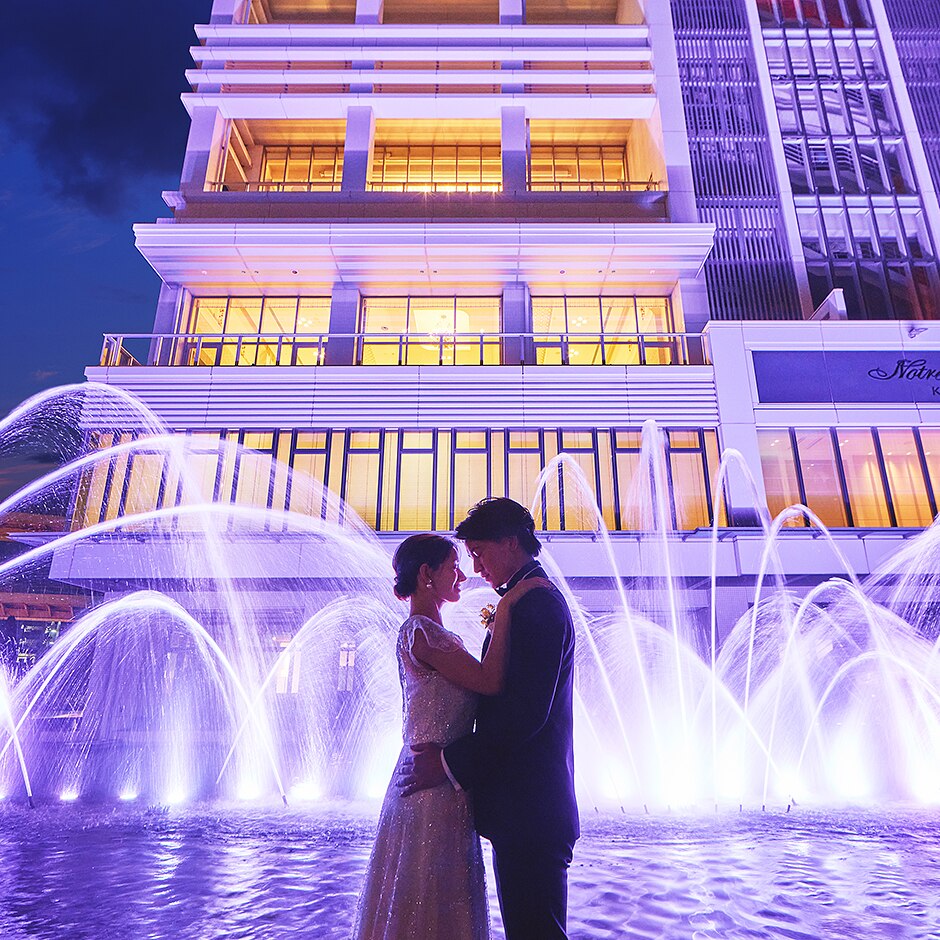 ナイトウェディングも大人気ライトアップした街を彩る天空のスカイコート演出 -