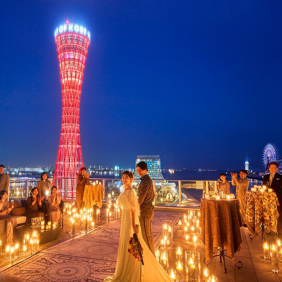 ナイトウェディングも大人気ライトアップした街を彩る天空のスカイコート演出 -