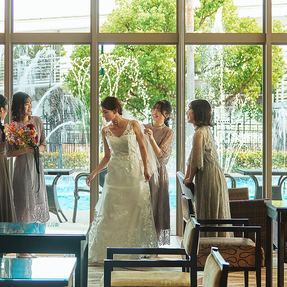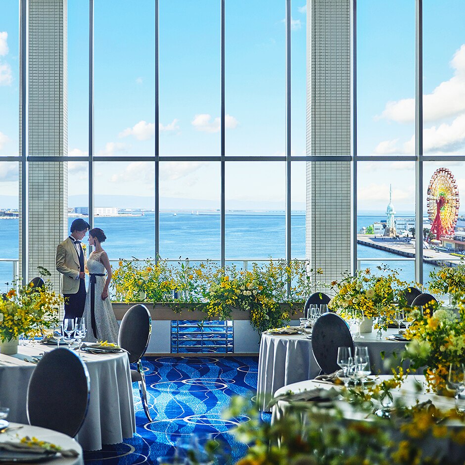 左手にメリケンパーク、右手にハーバーランドを一望できる絶好のロケーション。オーシャンビューの特等席とも言えるこのパノラマは、神戸港に馴染みがある人でも新鮮に映り、神戸で結婚式をする花嫁にふさわしい舞台