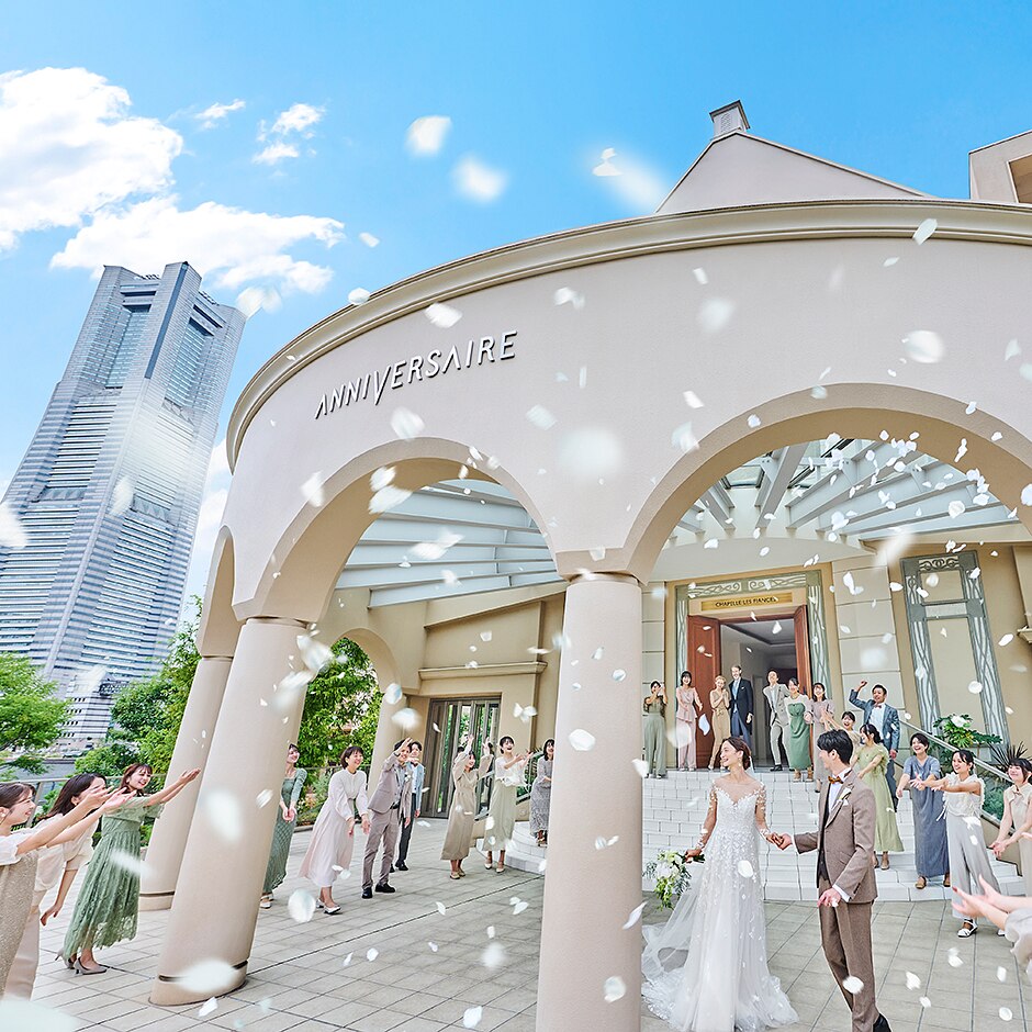 みなとみらい屈指の大聖堂では、青空の下での盛大なフラワーシャワーが叶う -
