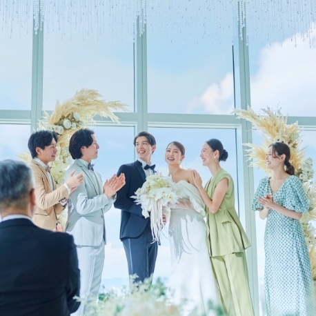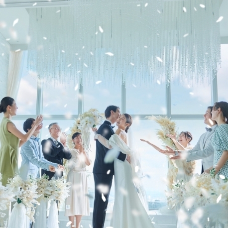 【来館ギフト最大3万円プレゼント!】天高8m*開放的なスカイチャペルで感動挙式!選べる3つの貸切会場と三ツ星シェフ監修のお料理でゲストをおもてなし≪新作ドレス・料理・宿泊10万円分など最大170万円優待≫
