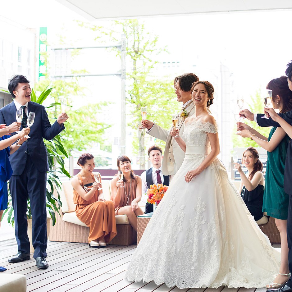 新たに誕生したガーデンテラスで挙式やアフターセレモニーを。開放的な空気の中で自由に過ごせる -