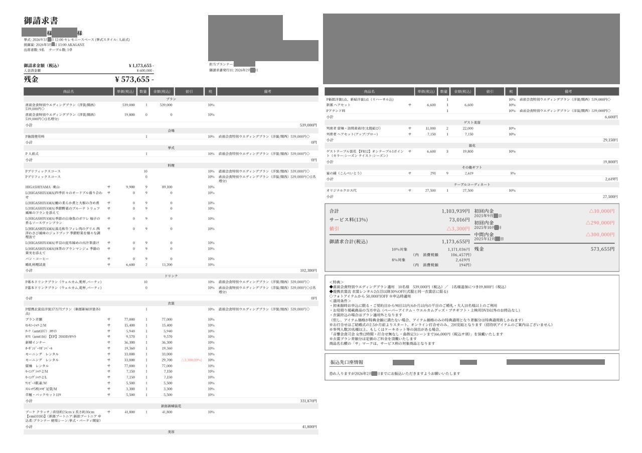 ※料金実例では申込金などを含む会場に支払った"総額"を表示しています。また、料金明細画像の項目名をもとに独自の基準で分類しています。