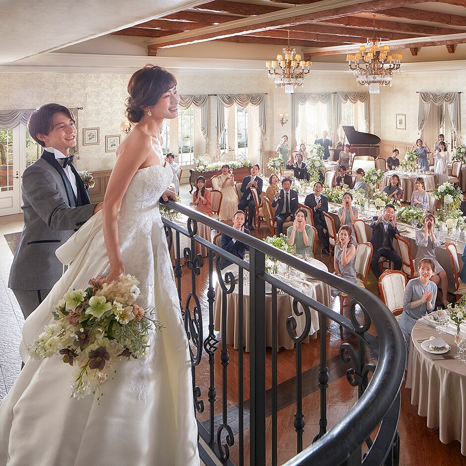 中心部にありながら広大な田園風景が広がるこの場所には、ブドウ畑や美しい清流、そして地中海リゾートをイメージさせるテラコッタカラーの屋根が立ち並ぶ。ふたりはもちろん、ゲストの記憶にも色濃く残る忘れられない一日をここで叶えて。