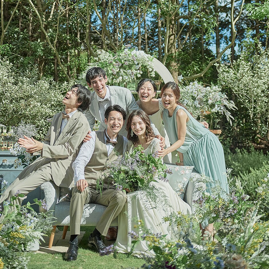 ガーデンを背景にした、にぎやかな雰囲気の撮影もおすすめ。ソファを置けばお洒落なフォトスポットの完成。