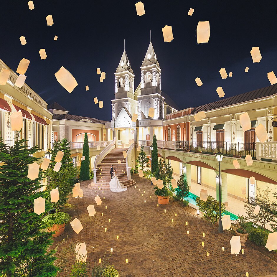 「スカイランタン演出」はプリンセスに憧れる花嫁に人気!ガーデンやチャペル、会場など、自由な場所でOK!