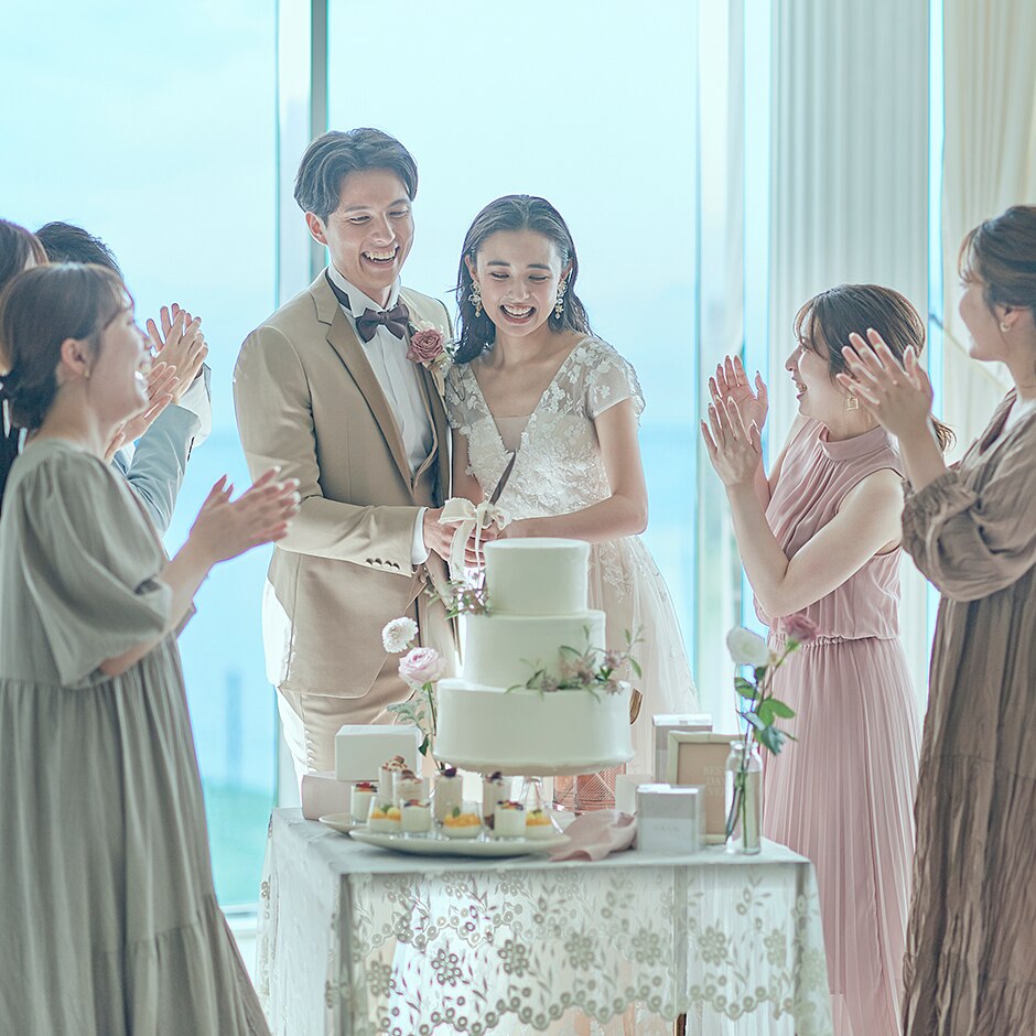 空と海をすぐそばに感じられる純白のステージで、笑顔と祝福に満ちた結婚式を