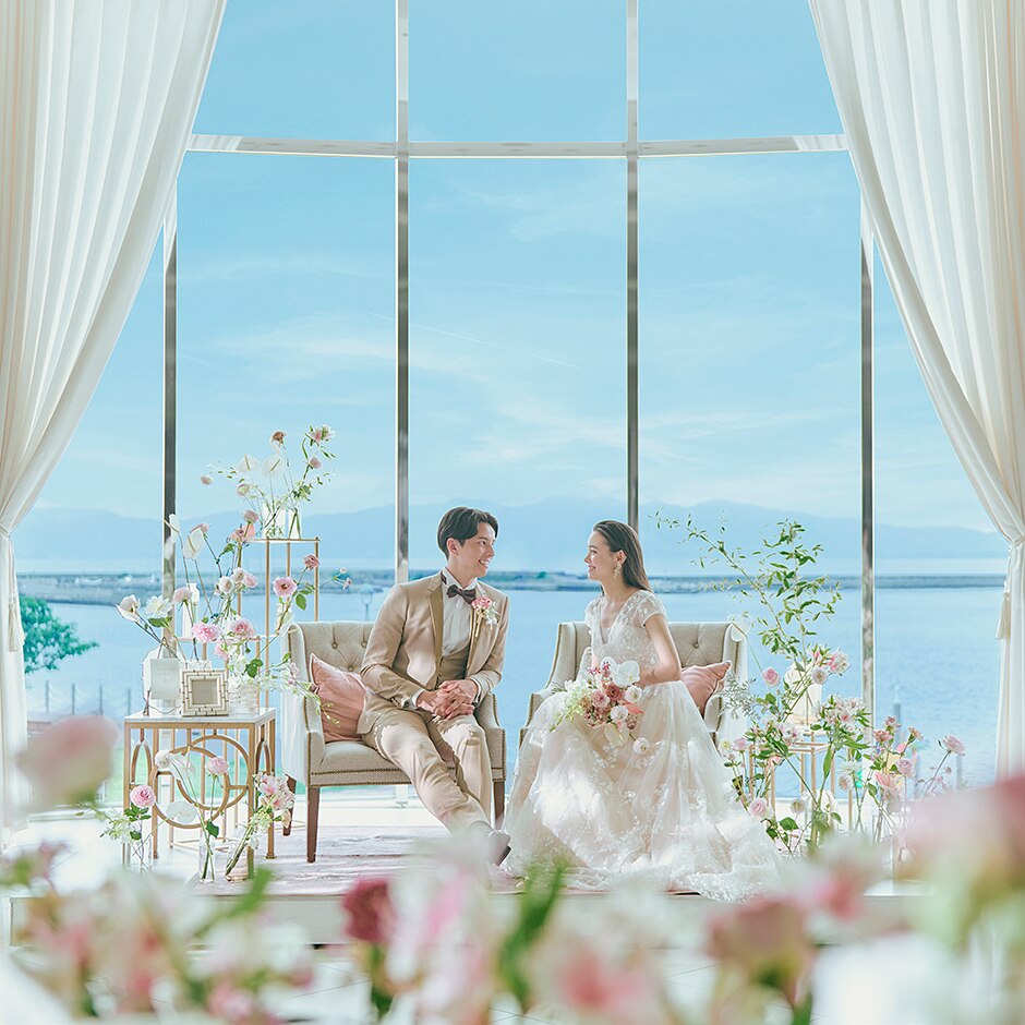 大分駅から車で8分のベイエリア。全フロアオーシャンビューで、さわやかな景色がふたりの特別な日の背景に。シェフ渾身の美食でゲスト満足度の高いおもてなしが叶う。大勢のゲストを招待できるスケール感も魅力。いつまでも心に残る素敵な一日を実現しよう