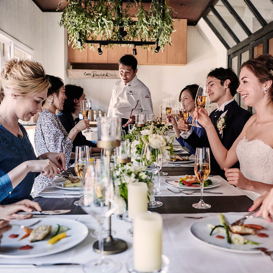 旬の厳選食材で彩る美食を堪能し、大切な人たちとの会話を楽しむアットホームな結婚式。全イベントで無料試食が可能。少人数ウエディングにぴったりなパーティ会場や挙式・新郎新婦衣裳を含む3大特典もチェック!フォトウエディングや挙式のみにも対応。