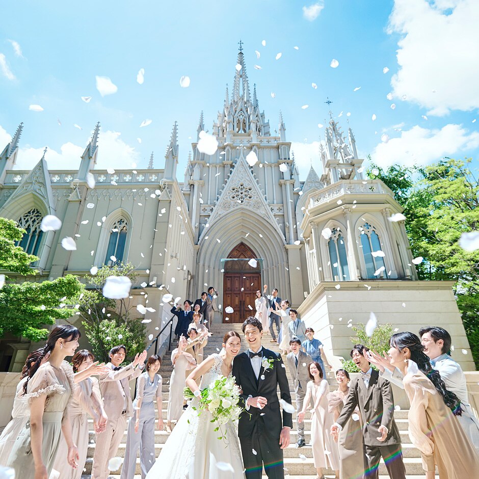 名古屋駅近くにありながら広大な敷地を有し、中央の壮麗な大聖堂を取り囲むように各施設が設計されている。敷地内どこからでも、緑と水辺に彩られた大聖堂ビューが楽しめる。式後も見惚れる写真映えする空間は必見。