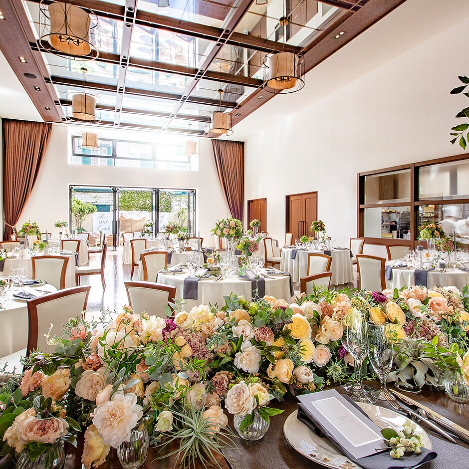 天井高5mの開放的な披露宴会場で過ごすゲストの皆さまとゆったりとした一日 -