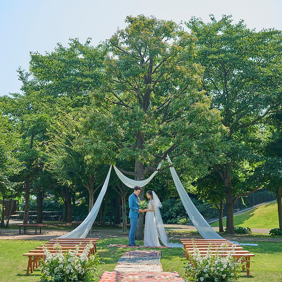 爽やかな風と太陽の光、 緑に囲まれたテラスで行う開放的なオリジナルウエディング