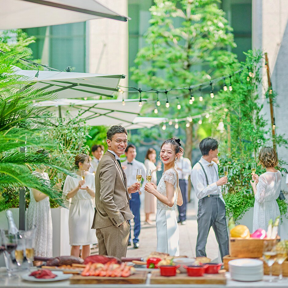 緑溢れるテラスを臨む開放的なバンケットで、ゲストと過ごすアットホームなパーティ -