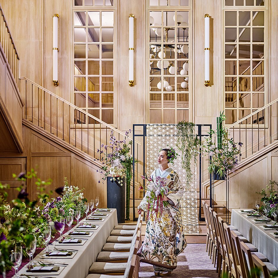 洗練された趣きが漂う同館には、華やかな和スタイルのウエディングが見事にマッチ。艶やかな和装を纏ったセレモニーや和のエッセンスを盛り込んだ演出を楽しむパーティなど、ふたりらしさ溢れる時間を叶えよう。