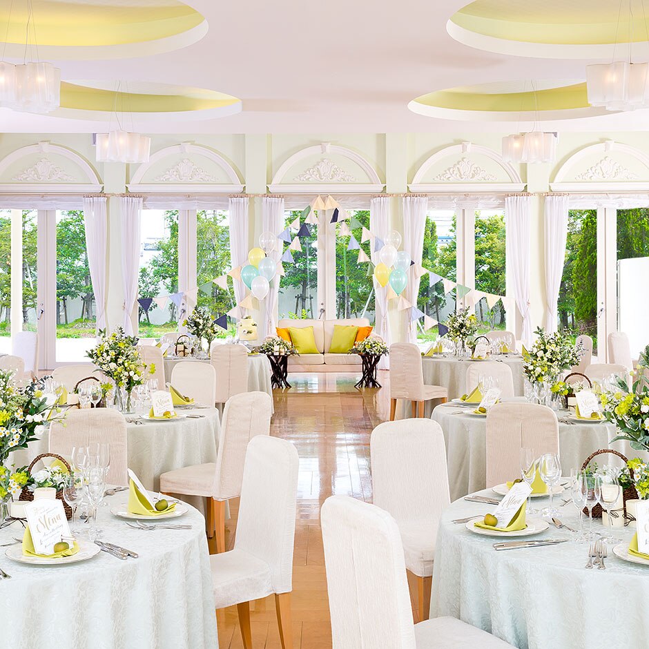 白を基調とした清楚な会場「レキシントンクラブ」。大きな窓から光が差し込むナチュラルな会場。