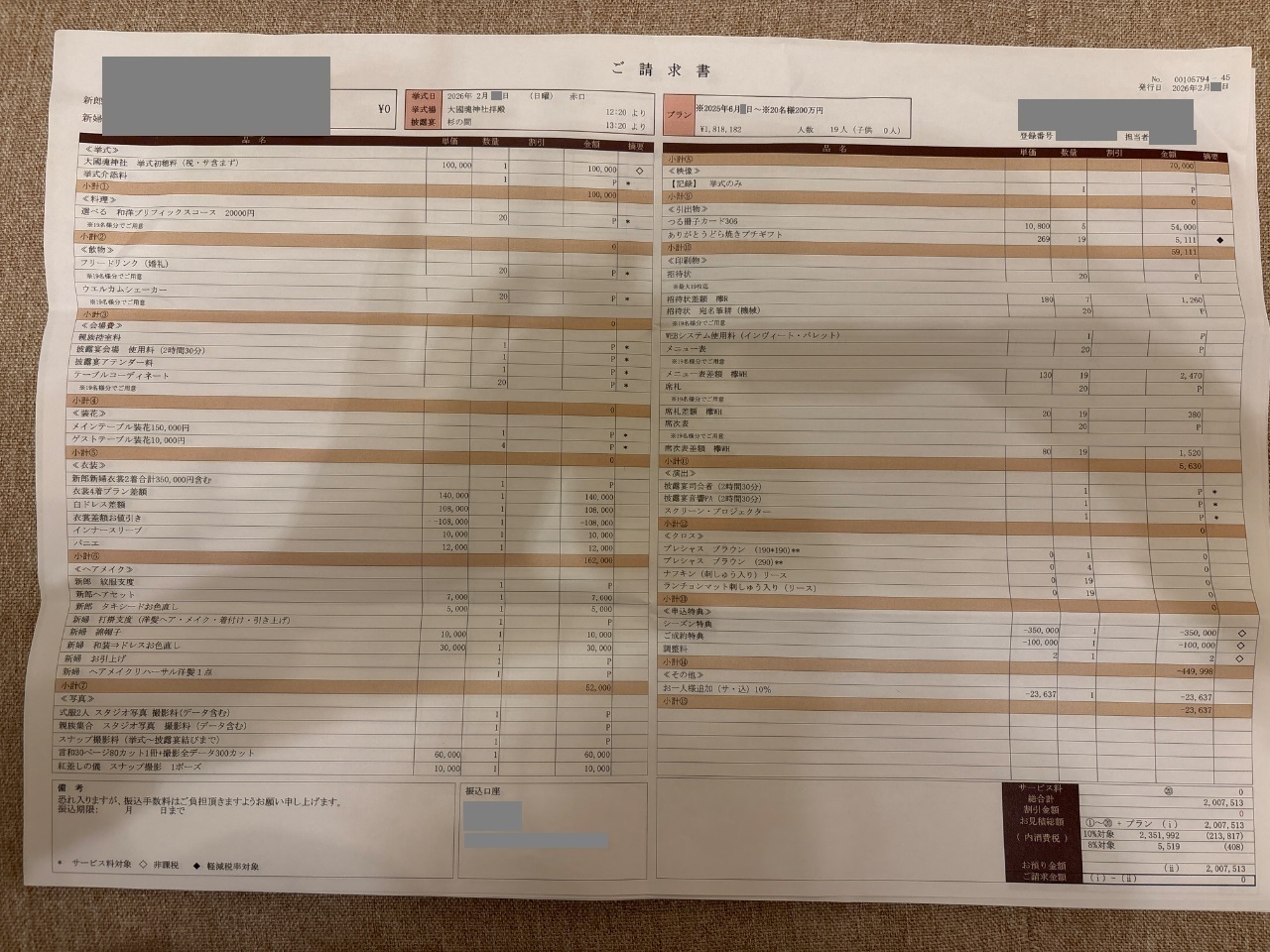※投稿された金額情報は、日取り、申込みのタイミングや会場の空き状況等によって異なるため、最終費用明細の項目や金額をもとにした、式場との価格交渉や追加サービス等の要望はご遠慮ください。