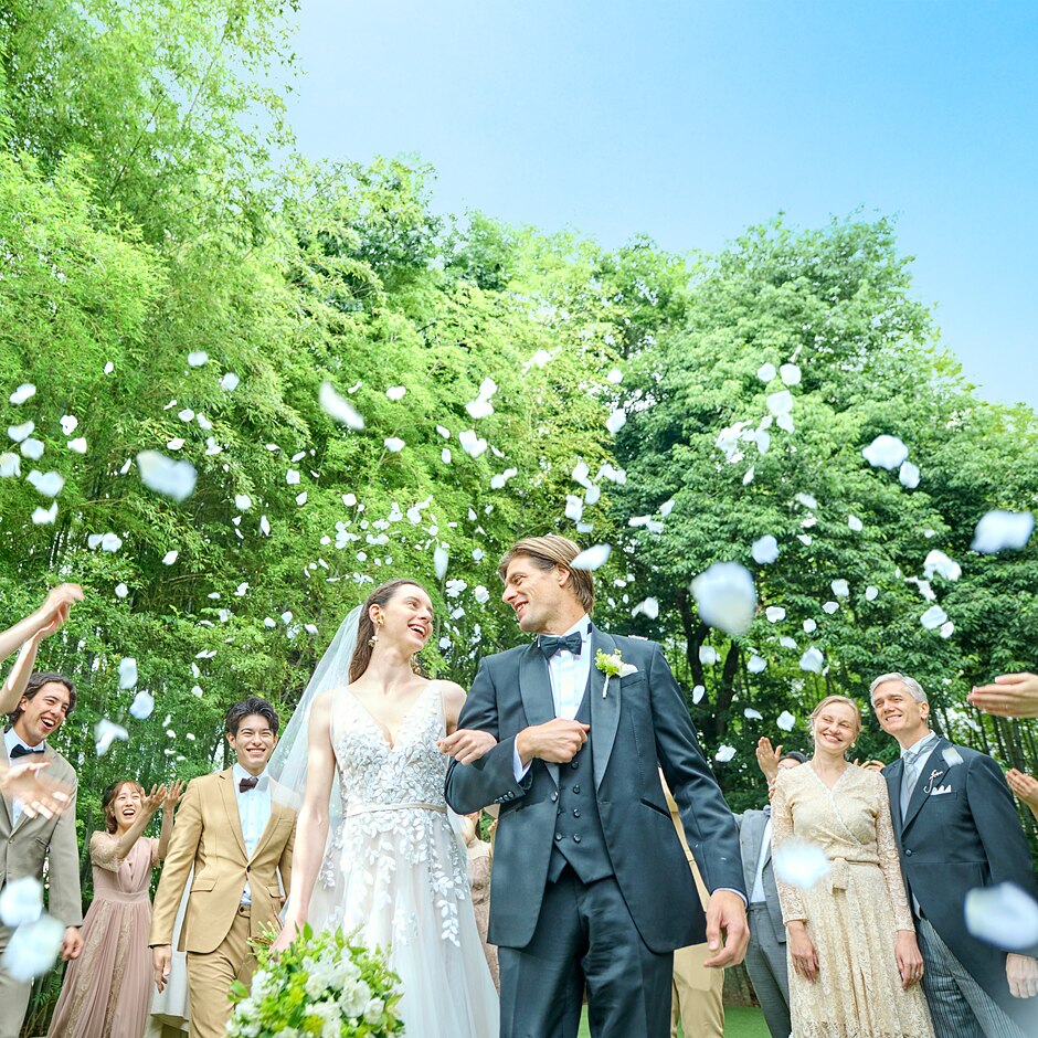 開放的な空間でのフラワーシャワーは自然と笑顔に -
