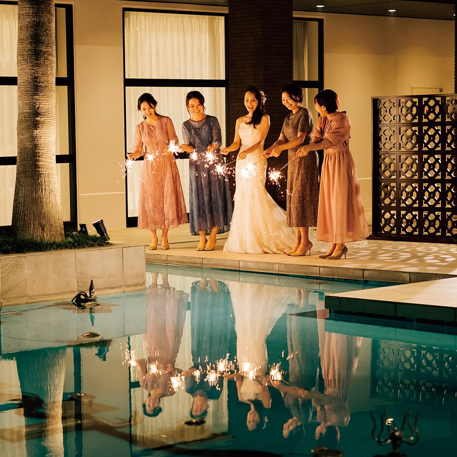 デイタイムはもちろん、ナイトタイムまでずっとゲストと一緒に思い出深い時間に。プールではウォーターショーが楽しめ、プールサイドではみんなで花火をしたりオリジナルカクテルを振舞ったり。自由な演出を叶えて。