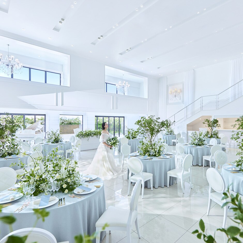 2つの会場は、どちらも2フロア吹き抜けでテラスが併設。白を基調とした『ソレイユ』は、シンプルなデザインだからどんなコーディネートも映えるのが嬉しい。ハイセンスな空間を自由に彩って、記憶に残るパーティを。
