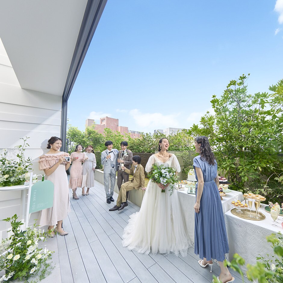 < 会場隣接のテラスで、演出やフォトタイムを >