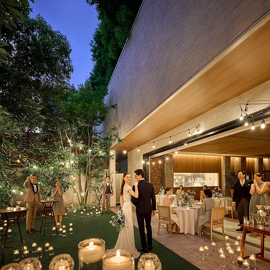 パーティ会場とつながるガーデンテラスで、緑に包まれるひと時を