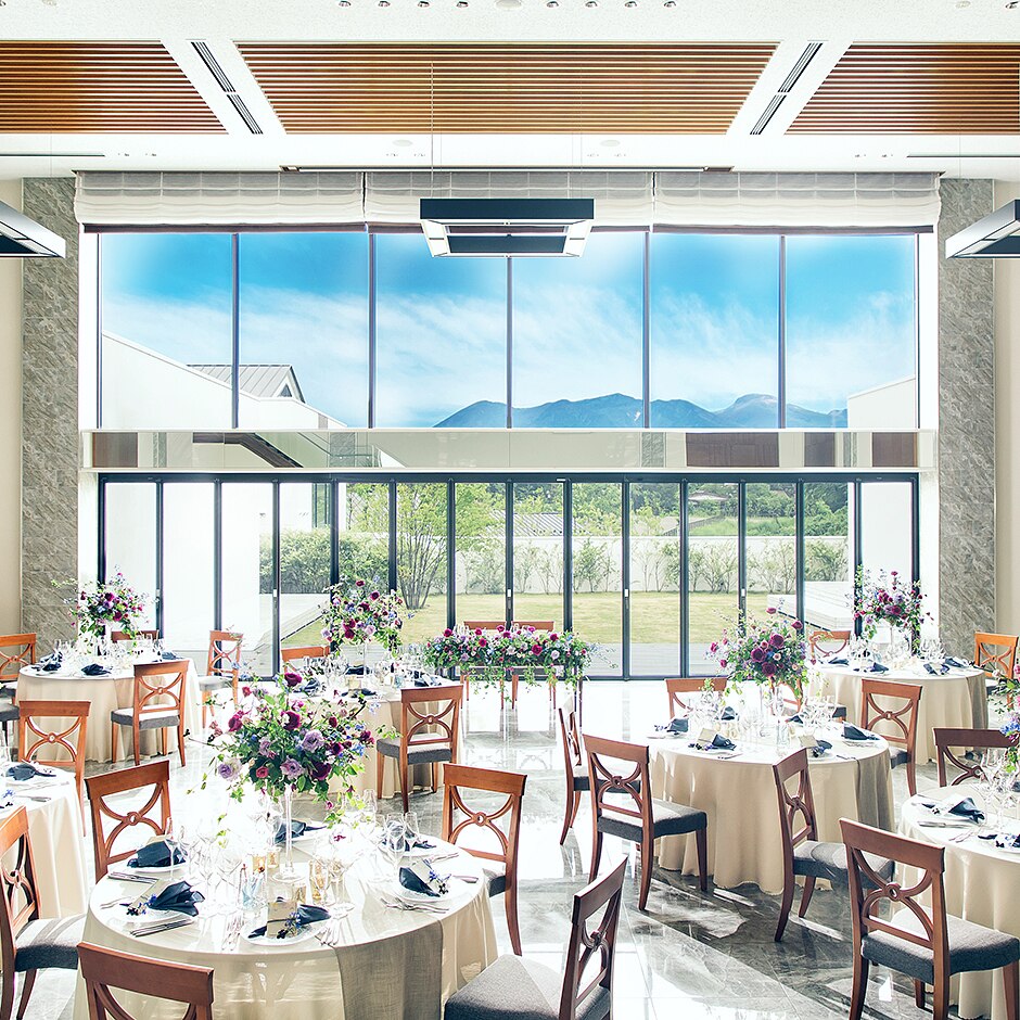 祭壇の先から那須岳が見守る大聖堂。那須高原らしい風景の中で永遠の誓いを叶えて -