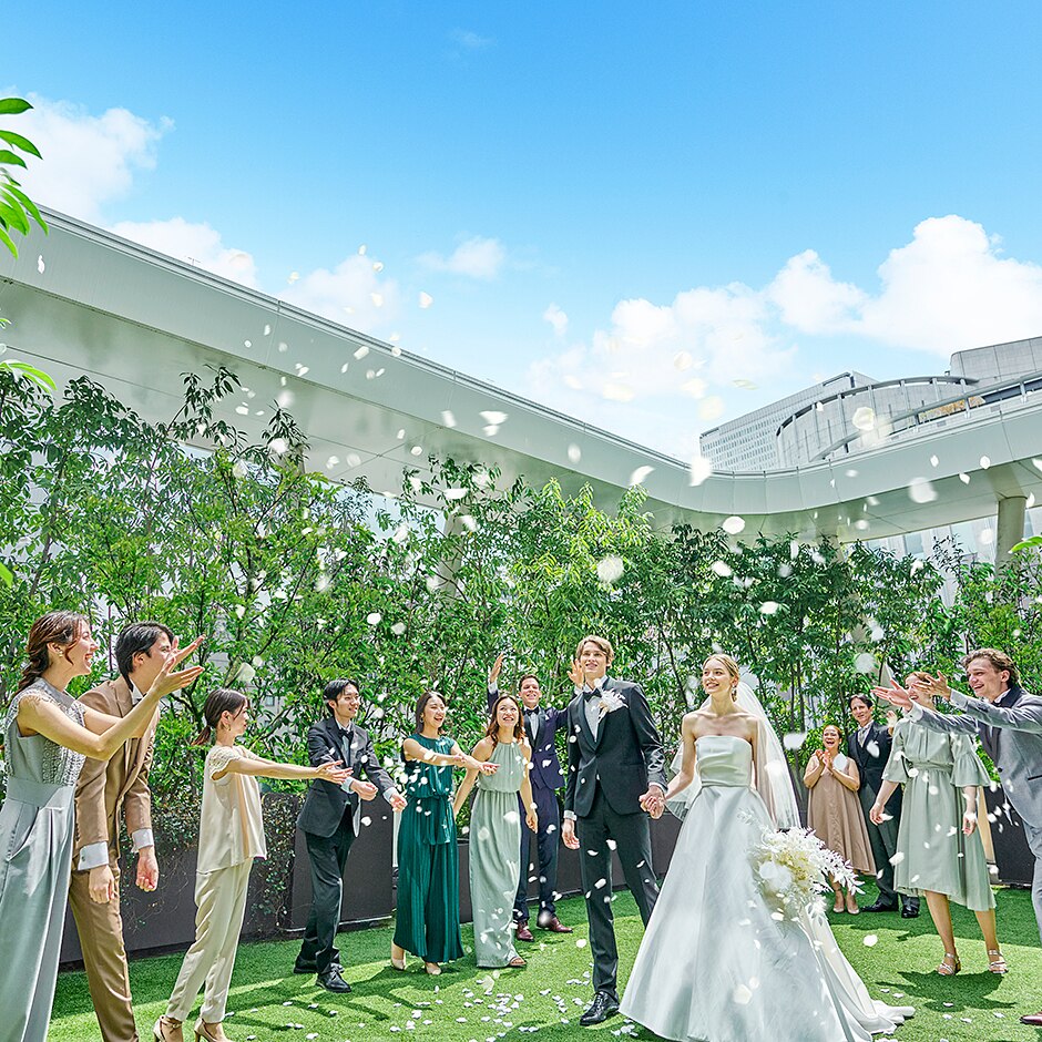 披露パーティ(都心の喧騒を忘れる緑と空に囲まれたテラス)