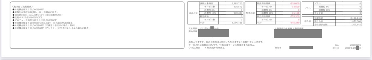 なお、投稿された最終費用明細は掲載された式場を利用した際の一例であるため、最終費用明細の項目や金額をもとにした式場との価格交渉や追加サービス等の要望はご遠慮ください。