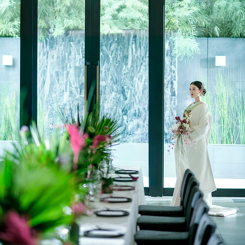 ケヤキの大樹や季節の緑に囲まれた「TRUNK HOTEL」で叶うのは、自然の恵みと調和するあたたかな結婚式。国際的なアワードでも評価されたハイエンドな空間と、心あたたまる接客がふたりの特別な一日を美しく描く