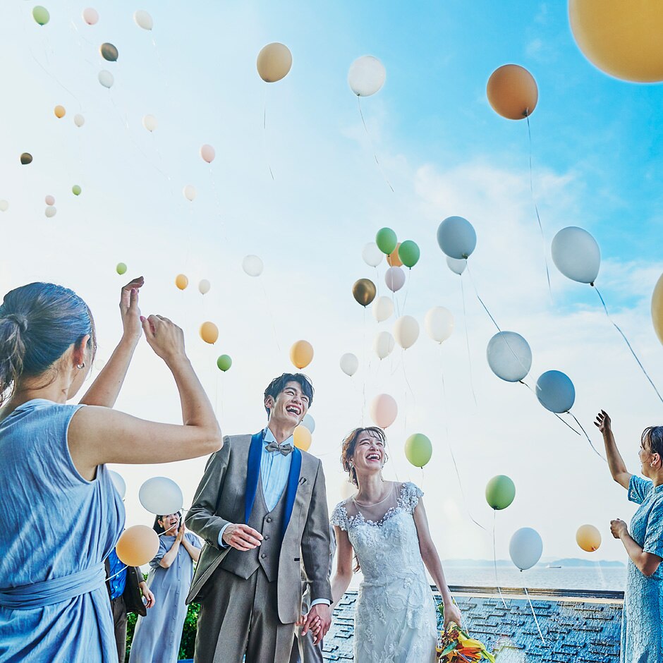 わからないことがあれば、その都度電話やメールで担当プランナーさんに確認をしていました。 こちらの質問や、不安に思うことに対して真摯に対応していただき、安心して当日を迎えることができました。 ゲストテーブルの装花は、紫陽花を使った水中花にしたいという、こだわりがありました。 披露宴ではゆっくり眺めることが出来なかったのですが、後から友人が撮影してくれていた水中花の写真を見て、理想の装花に仕上げてくださっていたことが分かり、感激いたしました! お色直し入場の際、テラスからの入場を選択したのですが、私達がテラスに現れた時のゲストの皆が盛り上がってくれたのがとても印象的でした! テラスからの入場にして正解でした。 担当プランナーさんおよび式場スタッフの皆様には大変お世話になりました。 お陰様で、ゲストの皆に楽しんでもらえて、笑いあり涙ありの、私達らしい結婚式を挙げることができました。 オープン当初のイベントで足を運んだ日から、「ここで結婚式を挙げたいなぁ」と思っていました。 その夢が叶えられて、そして皆に喜んでもらえた最高の一日となり、本当に嬉しいです。