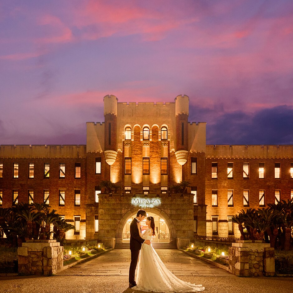 ライトアップされた外観をバックにロマンチックな写真撮影を。一生の宝物になる1枚を残して。