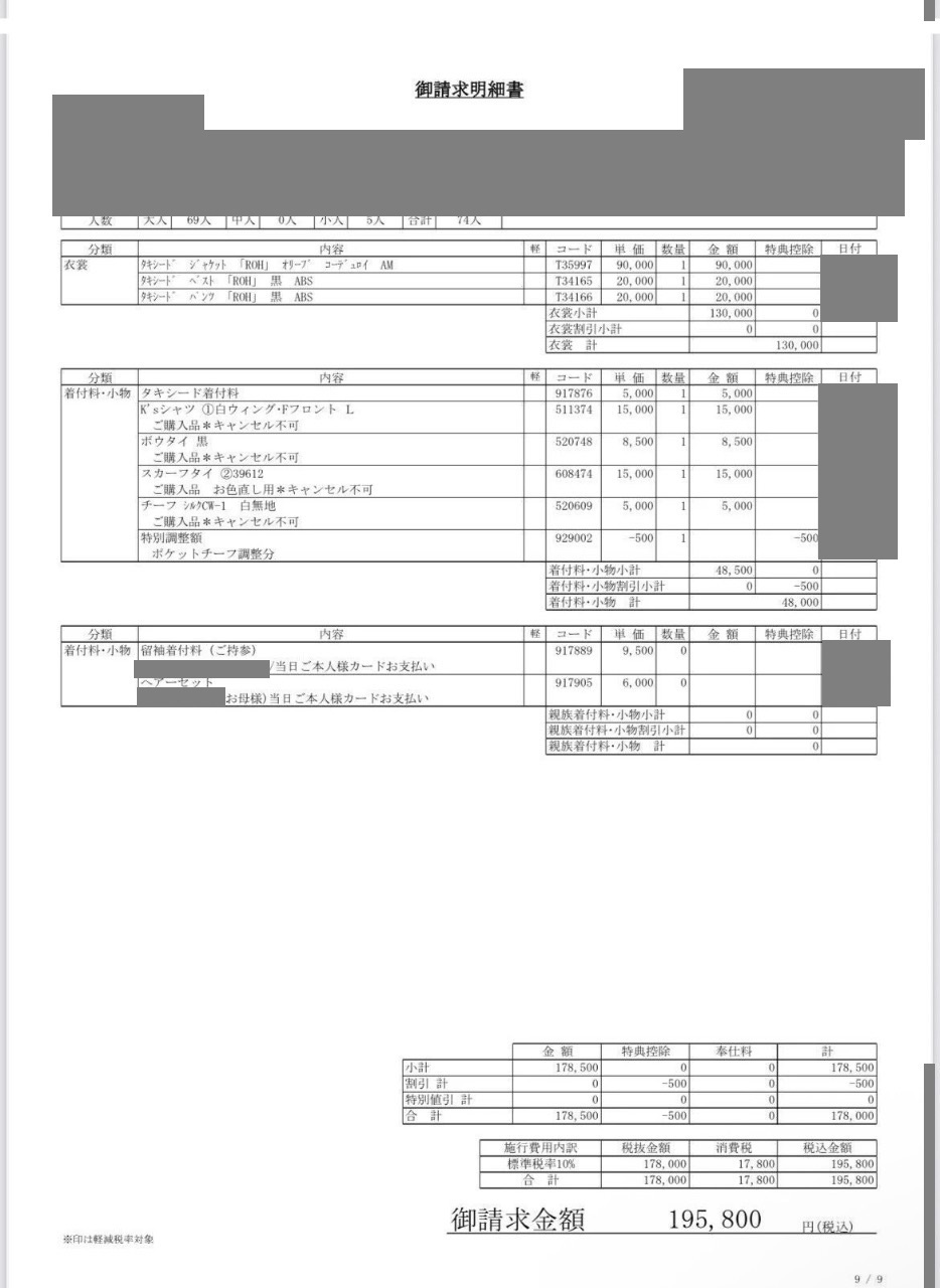 ※投稿された金額情報は、日取り、申込みのタイミングや会場の空き状況等によって異なるため、最終費用明細の項目や金額をもとにした、式場との価格交渉や追加サービス等の要望はご遠慮ください。