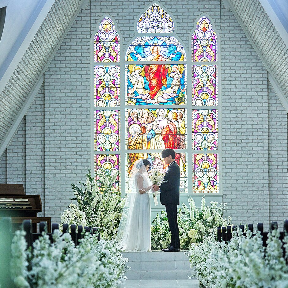 インターパークでは希少な本格ステンドグラスに見守られる本格挙式 -