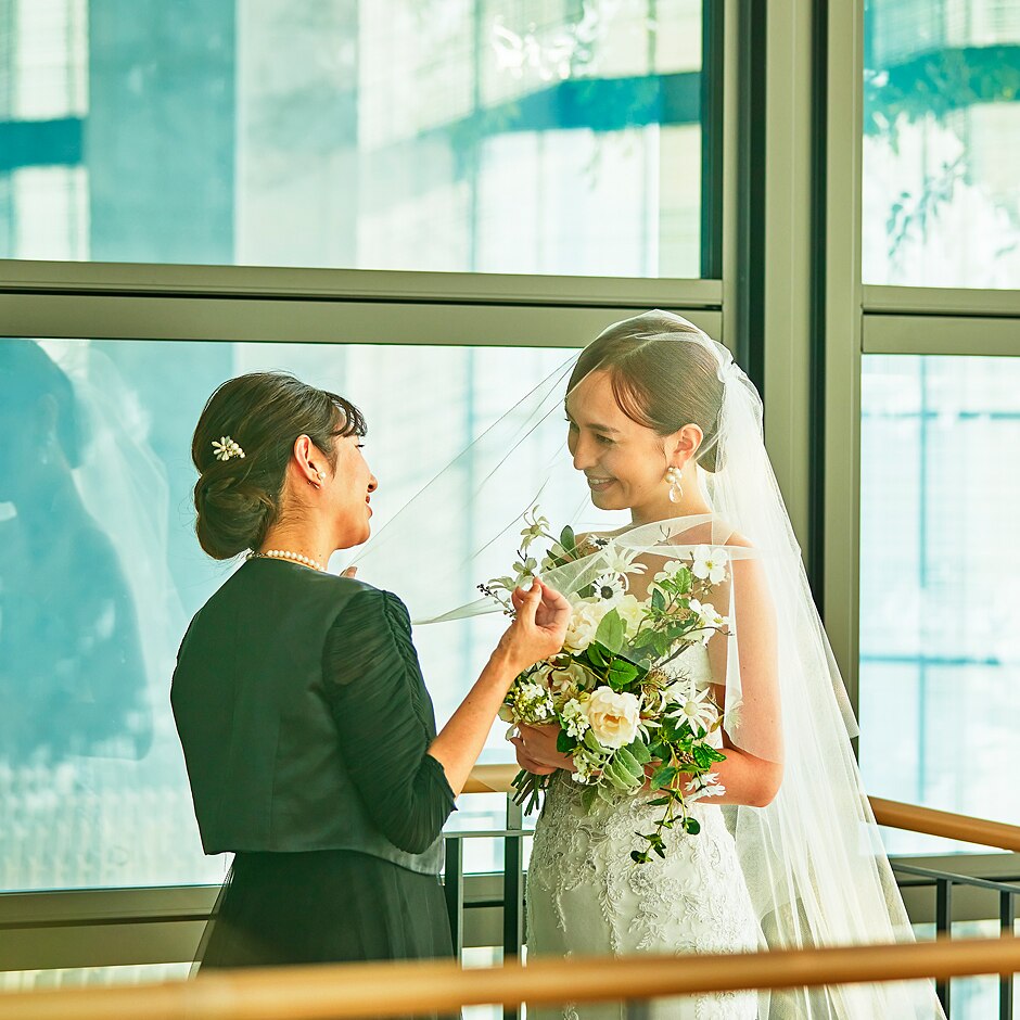 ずっと成長を見守ってくれた大切な方からのヴェールダウン。最後の身支度を済ませて、いざ新郎のもとへ。 -