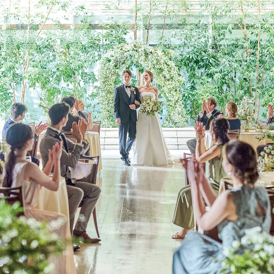 アクセス至便な梅田にあるアーバンリゾートをコンセプトにした1組貸切ゲストハウス。【自然光×緑】に彩られた圧倒的なスケールのチャペルはオシャレ花嫁絶賛!都会のオアシスのような緑溢れる邸宅を独占して。2万円相当コース試食や演出体験付フェアを開催中