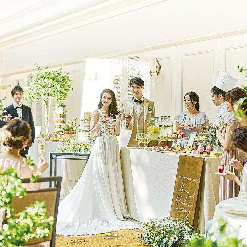 130年の歴史を誇るホテルにある700坪の庭園と、新たに生まれ変わったチャペル。光と緑が包む空間でふたりらしい誓いを。多彩な挙式スタイル、会場、料理が用意され、少人数から大人数、和婚やフォトまで自由に選択できる。特典&試食付フェアを毎日開催中。