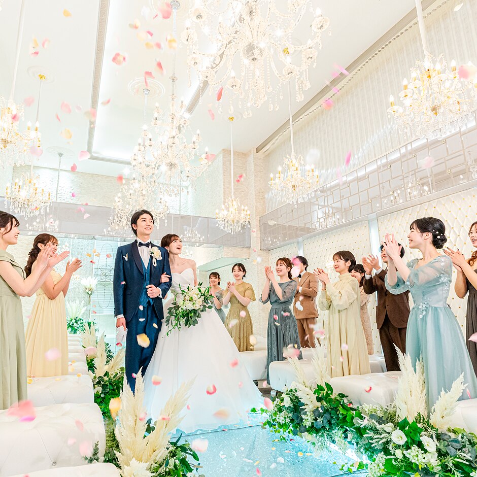 ゲストの笑顔とカラフルな花びらが舞う瞬間は、まさに幸せのシャワー -
