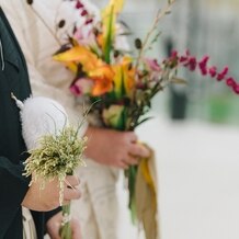 • モエレ沼公園 ガラスのピラミッドの写真|稲穂とブーケ、二人並ぶと映えますね。