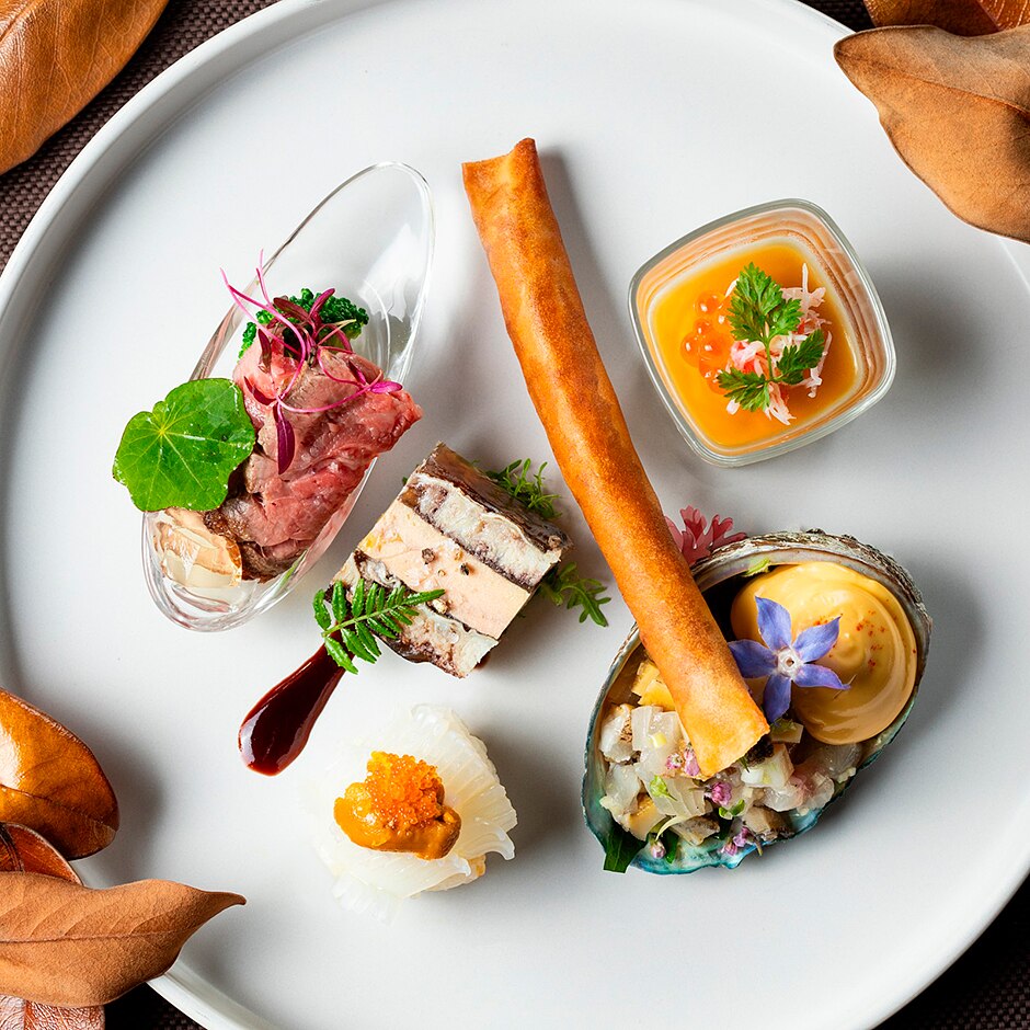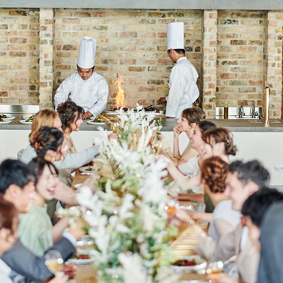おもてなしの料理は、オープンキッチンで創り上げられるオーガニックフレンチ。素材とその持ち味を活かす調理法にこだわり、ゲストの目の前で仕上げて出来立てをサーブ。記憶に残る美味しい料理と会話を楽しんで