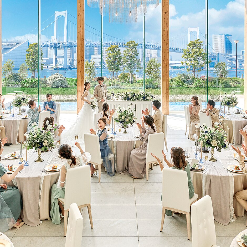 この度はご結婚、誠におめでとうございます。 また、たくさんの温かいご感想をお寄せいただき、心より御礼申し上げます。 「人生で最幸の一日」と感じていただけたこと、そしてゲストの皆様にも「こんな式初めて!」と喜んでいただけたこと、スタッフ一同大変嬉しく拝見いたしました。 レインボーブリッジや東京湾を望むロケーション、白を基調とした明るく開放的な空間、そして天使の羽やチャペルムービーなどの演出も、おふたりの特別な一日をより一層彩るものとなったことを嬉しく思います。 担当プランナーをはじめ、スタッフへの温かいお言葉もありがとうございます。費用面に関しても、事前のご説明やご相談を通じてご納得いただけたこと、安心してご準備を進めていただけたことを嬉しく思っております。 おふたりの大切な一日が、これからもずっと心に残る思い出となりますように。 末永いお幸せを、スタッフ一同心よりお祈り申し上げます。 貴重なご感想をお寄せいただき、ありがとうございました。