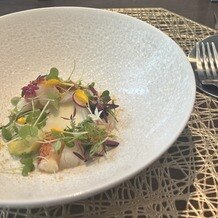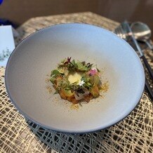 • ララシャンスガーデン 東京ベイの写真|海の幸の前菜、じゃがいもスープを真ん中に