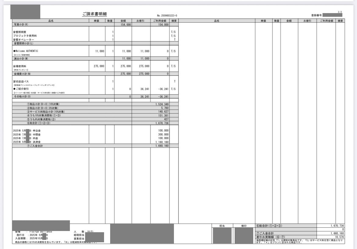 ※投稿された金額情報は、日取り、申込みのタイミングや会場の空き状況等によって異なるため、最終費用明細の項目や金額をもとにした、式場との価格交渉や追加サービス等の要望はご遠慮ください。