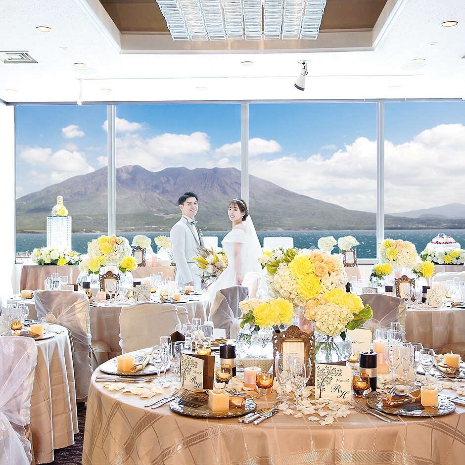 鹿児島の魅力である桜島と錦江湾が目の前に広がる最高のロケーション。ゲストへのお二人からの素敵なおもてなし