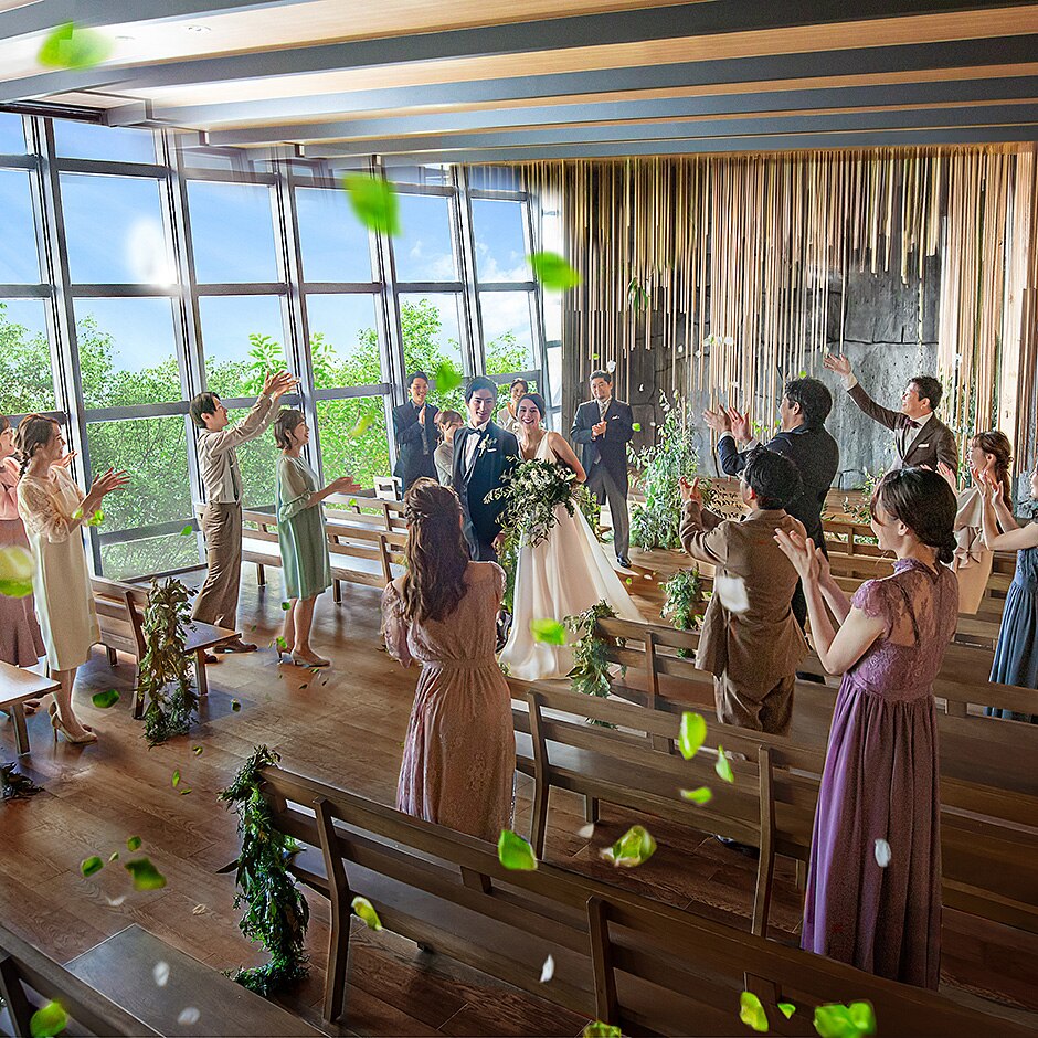 美しい眺望と緑に包まれた木目チャペルで笑顔溢れる感動的なセレモニーを。 -